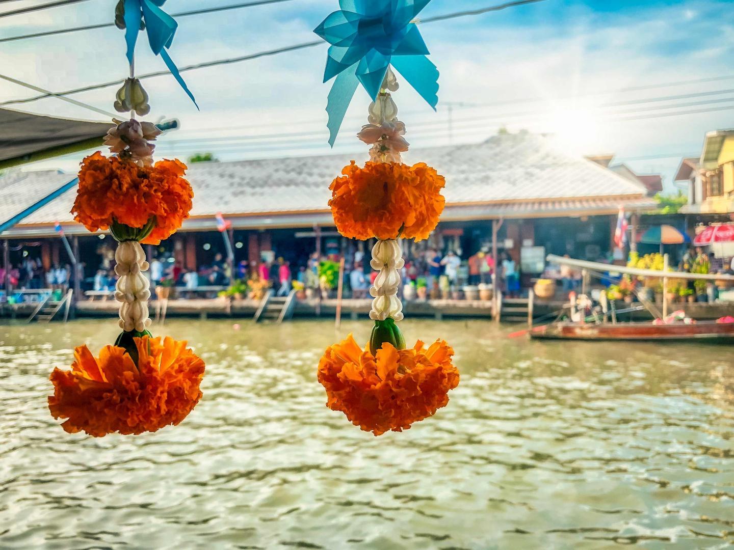 A riot of colors greets us this morning as we embark on a visit to the famous floating market at Damnoen Saduak. Connect with the friendly merchants who paddle along the congested canals in their sturdy canoes, laden with fresh fruit and vegetables to sell to shoppers on the banks. En route, we'll Dive Into Culture, stopping at a coconut palm sugar plantation where we'll discover how the farmer extracts the sap from his palm trees to create palm sugar. After lunch in a local restaurant, visit the world-famous Bridge over the River Kwai. After a walk along the bridge continue to the Thailand-Burma Railway Museum, revealing insights into the history of the infamous railway line built during WWII by the Imperial Japanese army. Our final stop today sees us pay tribute to the thousands of allied prisoners of war who were laid to rest at the War Cemetery.