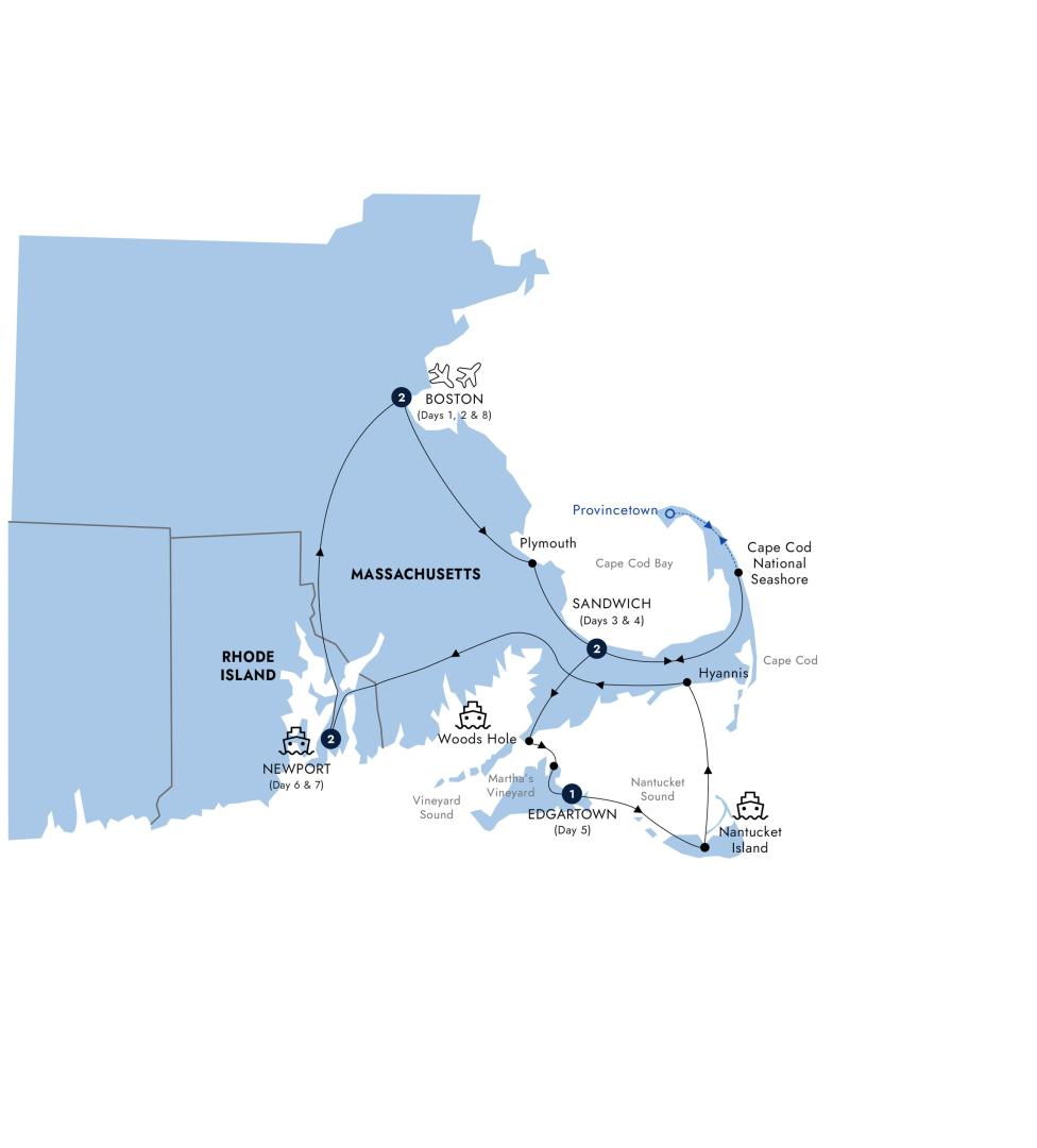 As your tour comes to a close, bid farewell to your fellow travelers and transfer to Logan International Airport for your onward journey. With memories of Boston's historic charm, the beauty of Cape Cod, and the elegance of Newport, you leave with a deeper appreciation for this unique corner of New England.